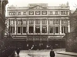 The Grand Theatre, Derby was a theatre in Derby in the English Midlands. It was opened in 1886, designed in an Italian renaissance style by a Birmingham architect Oliver Essex. It originally had a capacity of 2,500. Shortly after opening the theatre suffered a major fire, in which two people were killed and the building substantially damaged. Rebuilt it became a successful venue for touring companies and pantomime. In 1950 the theatre was closed down and was later converted into a ballroom.[1]