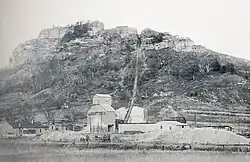 The land comprising much of Grandad Bluff was first purchased from the state by Judge George Gale in July 1851. Between 1851 and 1912, there were 83 transfers of the property. The bluff was used as a source of construction materials, and its limestone was quarried for many years. The bluff was to be sold for large-scale quarrying, however the La Crosse residents were outraged by the plans. To save the bluff from ruin, Ellen Hixon and her son Joseph, a prominent La Crosse family, purchased the land in 1909. The family held the property in trust until 1912 when the land was donated as a park to the city of La Crosse. A group of residents, led by Ellen Hixon, raised $15,000 to construct roads and purchase more land around the bluff. The area below Grandad Bluff became the center of Hixon Forest, which continues to serve as a popular hiking area.[4][5]