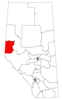 The riding's Indigenous community includes the Horse Lake First Nation and the Wanyandie Flats East settlement of the unrecognized Aseniwuche Winewak Nation.