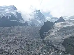 The Grands Mulets Hut (French: Refuge des Grands Mulets) is a mountain refuge in the Mont Blanc massif in the French Alps at an altitude of 3,051 m. It is owned by the Club Alpin Francais. The hut is located on a pyramidal rock island, at the junction of two streams of the Bossons Glacier on the north side of Mont Blanc. If the state of the glacier is not too severe, the hut is wardened in summer and can be used as an alternative route of ascent to the summit of Mont Blanc, following the original historic route by the first ascensionists. Nowadays the hut is used more frequently by ski-mountaineers in spring, or as a more sheltered and alternative route of descent from Mont Blanc than the much more popular Goûter route, though route-finding can be difficult in fog and requires prior knowledge of the crevassed state of the Bossons glacier below the hut.[1]: 23 [2]: 269