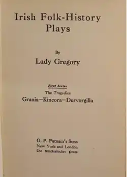 ![]() Cover of Irish Folk-History Plays (1912), which contained Grania, Kincora and Dervorgilla | |
