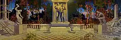 Wood was a Freemason and Member of Mount Hermon Lodge #263[19] in Cedar Rapids, Iowa, from 1921 to 1924.[20] After receiving his third Degree of Master Mason he painted The First Three Degrees of Freemasonry in 1921.[21] However, he was suspended for not paying dues in March 1924, and had no further association with the organization.[22]