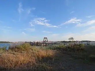 Grape Island is an island in the Hingham Bay area of the Boston Harbor Islands National Recreation Area. The island is part of the territory of the town of Weymouth, Massachusetts. The island has a permanent size of 54 acres (220,000 m2), plus an intertidal zone of a further 46 acres (190,000 m2), and is composed of two drumlins, reaching an elevation of 70 feet (21 m) above sea level, and connected by a marshy lowland. Tidal sand spits extend from the west end towards Weymouth Neck in Webb Memorial State Park and from the east end towards Slate Island.[1]