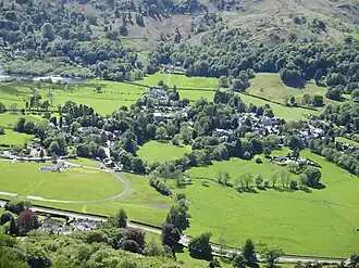Grasmere is a village and former civil parish, now in the parish of Lakes, in the Westmorland and Furness district of Cumbria, England, and situated in the centre of the Lake District and named after its adjacent lake. Grasmere lies within the historic county of Westmorland. The Ambleside and Grasmere ward had an estimated population of 4,592 in 2019.[2] William and Dorothy Wordsworth, the 'Lake Poets', lived in Grasmere for 14 years and called it "the loveliest spot that man hath ever found."[3]