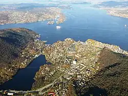 Gravdal is a neighborhood in the city of Bergen in Vestland county, Norway. It is located in the borough of Laksevåg in the valley between the mountains Damsgårdsfjellet and Lyderhorn. The Byfjorden flows past to the north and the lake Gravdalsvatnet to the south. The western end of the Damsgård Tunnel is located in Gravdal. Nygård Church is also located in Gravdal.[1]