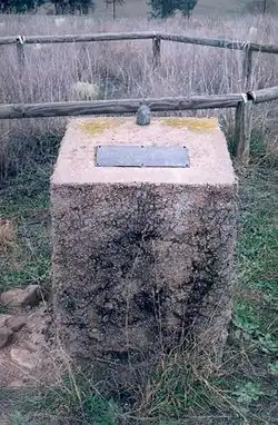 Windradyne was a warrior and a leader of the Wiradjuri near Bathurst. He established the friendly relations with William Suttor, whose father George crossed the Blue Mountains in 1822 and took up land that he named "Brucedale". During the frontier wars Windradyne's family was massacred and he declared war on the settlers. William Suttor learnt the local Wiradjuri dialect, and speaking with Windradyne he was able to defuse the situation at Brucedale homestead. The two men remained friends, and when Windradyne died he was buried on Brucedale. The grave was marked by Bathurst Historical Society in 1955, and continues to be revered by local Wiradjuri, who have recently planted trees around the grave in a traditional diamond pattern.[2][1]