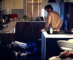 Gray went on to kill Chantelle in episode 6132, broadcast on 18 September 2020.[28] After Chantelle announced that she would leave Gray, they had an argument which concluded with Gray pushing her, only for Chantelle to land on a knife in a dishwasher.[28] Plummer recognised that her character's death may not be what audiences want to see, but believed it was important that they did see it, as it reflected real life.[28] Upon reading the scripts, Smith felt they were "very ambitious" and was unsure how the scene would be filmed, saying "[he and Plummer] just had to trust that the end result was going to pay off".[27] Plummer and Smith filmed the entire segment, which lasted for approximately 15 minutes, in one take, which is unusual for regular filming. Plummer explained that this was to avoid losing momentum and likened it to being in theatre.[28] Plummer also detailed that she and Smith rehearsed for the episode beforehand, the first rehearsal she had throughout her time on the show.[30] Writers previously foreshadowed the nature of Chantelle's death in scenes broadcast in January 2020, which was noticed by viewers after the broadcast of her death. In the scene, Gray warns Chantelle about placing cutlery upwards in the dishwasher.[31]