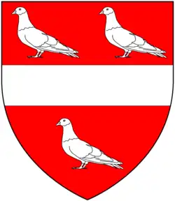 It has been the ancestral seat of the Bidlake family from the 13th century and, other than for a period of 68 years, has been owned by the family since then.[2] The Bidlake family crest is described as "a cock holding in the beak a trefoil, all proper" and the family motto is "Virtute non astutia" (By excellence, not by cunning).[3]