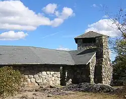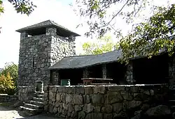 The Great Blue Hill Observation Tower, known locally as Eliot Tower, is a historic stone tower located near the summit of Great Blue Hill in Milton, Massachusetts. The tower was built in the 1930s by the Civilian Conservation Corps (CCC) and is a good example of the rustic architecture CCC projects were known for. The 35-foot-tall (11 m) tower provides views of about 270°, with only the view toward the actual hill summit obscured by vegetation. The tower was added to the National Register of Historic Places in 1980.[1]