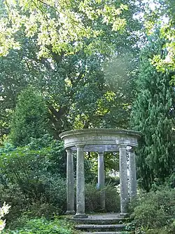 They originally started with 4.5 acres, and in 1962 and 1975 added more land to the garden.[3] They created an Italian Garden, and explorable 'ruins' and a 'temple' (all hand built by Roderick), using sand and stone from the garden.[4] The ruins and statuary (including Pope's Urn and Longleat Urn) add interesting focal points to the densely planted garden.[5]