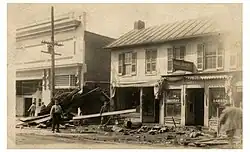 - Later that morning, a gas explosion occurs downtown, near the intersection of 5th Street and Wilkinson. The explosion starts a fire that destroys most of a city block. The open gas lines result in several fires throughout the city. The fire department is unable to reach the fires due to flooding, and many additional buildings are lost.[6][13]