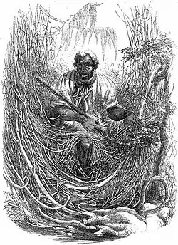 Some maroons were born to those who escaped slavery and lived in the swamp for their entire lives despite the hardships of swamp life: dense underbrush, insects, venomous snakes, and bears. The difficult conditions also made the swamp an ideal hiding place, not just for the formerly enslaved but also for free Africans, enslaved Africans who worked on the swamp's canals, Native Americans, and outcast whites such as criminals.[11][15][23] Maroons are known to have often interacted with enslaved Africans and poor whites to obtain work, food, clothes, and money. Some maroons plundered nearby farms and plantations, stole from anchored boats, and robbed travelers on nearby roads;[20] those caught were tried for murder or theft.[10]