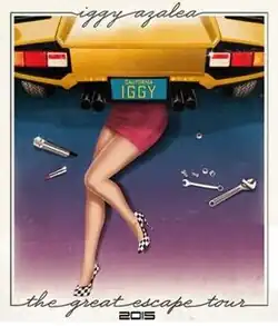The Great Escape Tour is the cancelled headlining concert tour by Australian recording artist Iggy Azalea in support of her debut album, The New Classic (2014), its reissue, Reclassified (2014) and then-upcoming second studio album. The tour was scheduled to visit twenty-one cities across North America over the span of two months, beginning on 18 September 2015 in San Diego, California and concluding on 27 October 2015 in Glendale, Arizona. It was announced on 29 May 2015 that the entire tour was cancelled due to low sales,[1] with a new tour to be announced with her then-upcoming, later cancelled album in 2016.[2] It was the first of Azalea's tours to be cancelled, with her 2018 Bad Girls Tour also later cancelled.[3]