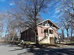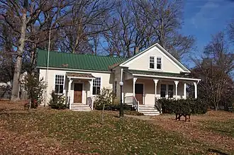 The Great Falls Grange Hall and Forestville School are two historic buildings that served as a Grange meeting hall and as a school located in Great Falls, Fairfax County, Virginia. The Forestville School was built in 1889 as a one-room school, and expanded in 1911 with the appendage of the Floris School. It is an L-shaped wood-frame structure covered in weatherboards and topped by a standing-seam metal cross-gable roof. After closing as a school in 1922, it served as a residence and then as the Great Falls Post Office from 1959 until 1982. The Great Falls Grange Hall was built in 1929, and is a 1+1⁄2-story brick building with a gable front. It features a front porch supported by concrete pillars in the American Craftsman style. Both buildings are owned by the Fairfax County Park Authority.[3]