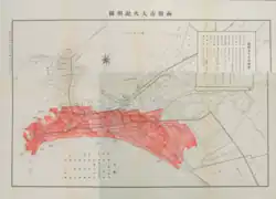 On 21 March 1934, a fire was started in a house located within the Sumiyoshi area, Hakodate.[3] Over two days, burning debris fanned by strong winds set fire to the surrounding areas; including a local court, department store, school, and hospital. According to official documents, 2,166 people lost their lives, with 9,485 injured; 145,500 people were made homeless and 11,055 buildings lost.[4] The fire destroyed around two-thirds of all buildings in Hakodate. This event also led to many residents leaving and subsequently depopulating the city.[5]