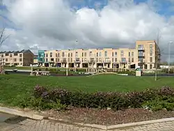 280 new homes are being built on the Glebe Farm site, south of Shelford Road.[3] These are mainly apartments. Forty per cent of the homes will be "affordable homes", a mixture of rental and intermediate housing, provided by Cambridgeshire Partnerships Limited. The first residents arrived in late 2012. North of Shelford Road, on the Clay Farm site, 2300 homes are to be built, along with a new secondary school, Trumpington Community College (opened in 2015),[4] allotments, and a 120-acre country park. A new neighbourhood centre for Trumpington as a whole will host library provision, community facilities, medical facilities, retail space, youth facilities, as well as office space for the police and social services. Again forty per cent of the homes will be "affordable homes".[5]