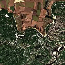 The Great Meadow or Grand Meadow (Ukrainian: Великий луг, romanized: Velykyi luh) is a lowland area on the Dnieper and the Konka to the south of Khortytsia Island that historically consisted of a system of rivers, reed beds, swamps, flooded forests, and meadows. The Great Meadow ceased to exist in 1950s, when it was flooded by the Kakhovka Reservoir, and re-emerged in 2023 upon the destruction of the Kakhovka Dam during the Russian invasion of Ukraine.[1]