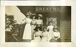 The Great Notch station depot was built in 1905 for the New York & Greenwood Lake Railway, a subsidiary of the Erie Railroad. The station was built as a green-red "type five" frame structure. While the main building was 12' × 28' × 18' in size, the station also included an old boxcar used as a tool house. The box car was only 12' × 45' and served the station for several decades. The station (telegraph call "GA") was just west of the Great Notch interlocking signal tower (telegraph call "GN"), which was built in 1900 to serve the junction of the Greenwood Lake Railway and its Caldwell Branch, heading south (railroad westbound) for the communities of Cedar Grove, Verona, Caldwell and Essex Fells. The station also served a local yard for train storage for the branch line via a wye.[8] At Essex Fells, connections could be made for train service to Morristown via the Morristown and Erie Railroad. The Caldwell Railroad diverged from the current New Jersey Transit line about 0.25 miles (0.40 km) west of the New Jersey Transit Great Notch station and followed its own route to Caldwell.[14] The station at Great Notch was more than just a building for people at the railroad. The station had a large water tower next to GA Signal and a potbelly stove. The station was tended by a husband and wife combination, serving the locals their daily newspapers and their mail. Great Notch did not receive mail delivery until the mid-1950s.[15]