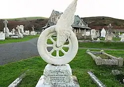 On 11 July 1914, Beatrice Blore drove a Singer Ten car up the cable track of the Great Orme, with a gradient of 1 in 3 in places, becoming the first woman to drive up the steep and challenging headland. She was six months pregnant at the time and the drive was a publicity stunt developed by her partner George Wilkin Browne to help sell the cars at his Llandudno garage, North Wales Silver Motors.[21] Her feat is commemorated by her unusual gravestone in St Tudno's graveyard.[21]