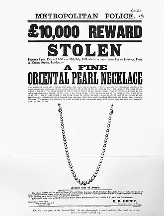 - ^ Jordan, Steven (1 December 2013). "THE GREAT PEARL ROBBERY OF 1913". Jewellery Valuations updates from Hawksworth Valuations. Retrieved 13 September 2022.
