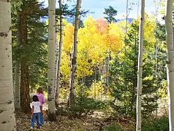 The riparian zone follows creeks through the subalpine and montane ecosystems at Great Sand Dunes. Cottonwood and aspen trees, red osier dogwood, and alder grow well in this wet environment, in turn providing shade and habitat for black bears, water shrews, and western tanagers. Rio Grande cutthroat trout are found in Medano Creek.[10]