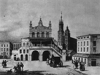 ![]() View of Wielka Waga (extreme right) and Sukiennice (centre), 19th century engraving | |