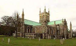 Great Yarmouth Minster (the Minster Church of St Nicholas, founded in the 12th century as an act of penance) stands in Church Plain, just off the market place. It is the third largest parish church in England, after Beverley Minster in the East Riding of Yorkshire and Christchurch Priory in Dorset. Neighbouring Church Plain has the 17th-century timber-framed house where Anna Sewell (1820–1878), author of Black Beauty, was born.