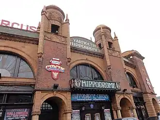 The Hippodrome Circus in Great Yarmouth was built by the showman George Gilbert in 1903[1] and designed by architect Ralph Scott Cockrill. It is one of only two purpose-built permanent circuses in England still in operation, and one of only three in the world with a circus floor that sinks into a pool.[2]