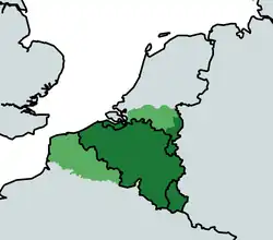 Greater Belgium (French: Plus Grande Belgique, Dutch: Groter België) is a Belgian irredentist concept which lays claim on territory nationalists deem as rightfully Belgian. It usually laid claim to: German territory historically belonging to the former Duchy of Limburg (Eupen-Malmedy), Dutch Limburg, Zeelandic Flanders, and the Grand Duchy of Luxembourg.[1][2] To a lesser degree, they also claimed the Dutch province of North Brabant[3] and the French Netherlands (Nord-Pas-de-Calais).[4] Shortly after the Belgian Revolution, some groups even proposed a Belgo-Rhine federation.[5] Nowadays, belief in Belgian irredentism is very uncommon and overshadowed by talk of partitioning Belgium or the incorporation of Flanders into the Netherlands (see Greater Netherlands).
