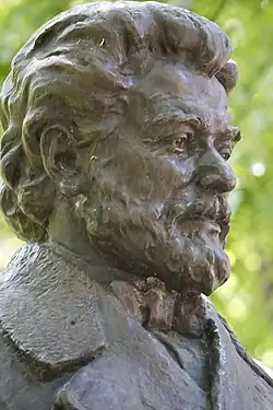 In the larger context of cultural identity, Moldovan intellectuals were pushed to discuss local writings in terms of "Moldovan literature", which included "Romanian writers from earlier periods that had been born throughout greater Moldavia."[71] One prominent case was that of Neamț County native Ion Creangă, who was defined as a classic of Moldovan literature and a "son of the Moldovan people"; some references to him as a Romanian writer were only allowed during the Khrushchev Thaw of 1955–1968.[72] This trend was first encouraged by Camenca native Artiom Lazarev as Minister of Education (1947–1951) and of Culture (1953–1963)—his contribution included commissioning the Alley of Classics complex in Chișinău, which displays the busts of Creangă, Alecsandri, Eminescu, and Dimitrie Cantemir.[73]