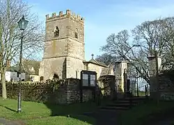 The Church of England parish church of Saint Peter was built in the 13th century. The chancel retains Early English features including a priests' door and two lancet windows in the south wall and a trio of stepped lancets in the east wall. The west tower was added in about 1300. The nave has 17th-century features including two north windows, two south windows and the south door, and the polygonal pulpit. The chancel arch was rebuilt in 1882 under the direction of the architect H. R. Gough.[6] It is a Grade II* listed building.[8]
