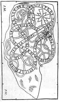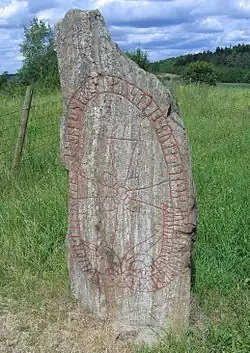 Sawyer (2000), on the other hand, reacts against this commonly held view and comments that the vast majority of the runestones were raised in memory of people who are not reported to have died abroad.[22] She argues that few men who went abroad were honoured with memorials and the reason is that the runestones were mainly raised because of concerns at home, such as inheritance issues.[24] Such concerns would have arisen when a family knew that a relative would not return from abroad.[25]