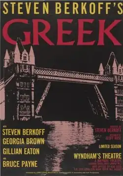 Greek is a verse play by Steven Berkoff. It was first performed at The Half Moon Theatre, London on 11 February 1980. It is a retelling of Sophocles' Oedipus Rex. Berkoff wrote: