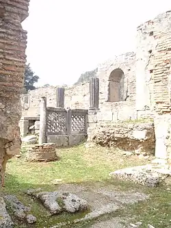 The initial simple building with the well was gradually transformed into a luxurious space with more complex architecture[1] and ample decorations and mosaics. In the Roman period, the water supply and drainage systems were perfected. There were both hot and cold baths, as was common in training areas and sport competition venues.[2]