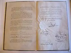 Other important changes included the institution of an Electoral Court for the settlement of election disputes stemming from the parliamentary elections, the addition of new conflicts for MPs, the re-establishment of the State Council as the highest administrative court (which, however, was constituted and operated only under the Constitution of 1927), the improvement of the protection of judicial independence and the establishment of the non-removability of public employees. Finally, for the first time, the Constitution provided for mandatory and free education for all,[2] and declared Katharevousa (i.e. archaising "purified" Greek) as the "official language of the Nation".