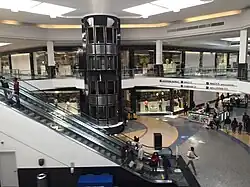 Green Acres Mall was built in 1956 on the northern portion of Curtiss Airfield and was one of Long Island's first open air malls. It was partially built on the former site of the Columbia Aircraft Corporation.[3] In 1968, the mall was enclosed "to create an even more appealing shopping environment." At the time, there were three anchor stores, Lane's, JCPenney, and Gimbels. There were more renovations and an expansion in 1983 including adding a second level, food court and a fourth anchor store, Sears.[4]