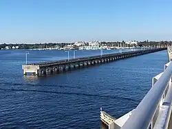 The Green Bridge is a bridge carrying U.S. Highway 41 Business (US 41 Bus.) over the Manatee River between Palmetto and Bradenton, Florida. Built in 1986, the current Green Bridge is 40 feet (12 m) tall and carries four lanes. The original Green Bridge, which partially still stands as a fishing pier, was built in 1927 and named for Emmet P. Green, a local resident who served on the state road board.[1]