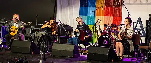 As a student in Philadelphia, Moloney met the director of the Smithsonian Folklife Festival, who encouraged him to gather a set of performers for the 1976 festival.[2] This received a positive response, and Moloney decided to form an ensemble that would bring together Irish vocal, instrumental, and dance traditions at concerts and festivals.[3] Moloney cofounded the Green Fields of America in 1977.[4]