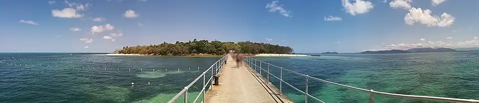 Green Island is coral cay 27 km (17 mi) offshore from Cairns, Queensland, Australia located within the Great Barrier Reef Marine Park World Heritage Area in the Coral Sea. The island is surrounded by coral reef and protected in the Green Island National Park. Most visitors come for the day. A luxury resort with 46 rooms is situated on the island.[4]
