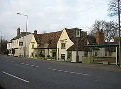 The pub has existed since the 15th century.[1] The original timber frame is still standing but has been concealed by later brickwork.[2] The original building included a medieval hall house, which was split into two floors in the 16th century.[1][3] A bay window facing the road was added later. The pub was extensively redeveloped around 1954.[1] The beer garden can accommodate up to 200 people.[4]