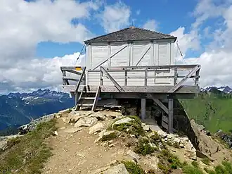 The Green Mountain Lookout is a historic fire lookout tower located at the summit of Green Mountain in the Glacier Peak Wilderness and the Mount Baker-Snoqualmie National Forest in Snohomish County, Washington. The single-story wood-frame structure measures 14 by 14 feet (4.3 by 4.3 m) and was built according to a standard National Forest Service design in 1933 by the Civilian Conservation Corps. The structure includes an exterior catwalk and a cable anchor system to protect from strong winds.[2]