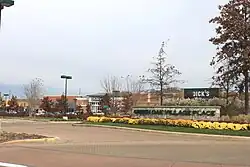 Following the construction of several new homes in the area, as well as increase in traffic along US-23 and Interstate 96,[2] plans were made in 2004 to build a new lifestyle center called Green Oak Village Place at the interchange of U.S. 23 and Lee Road southeast of town. A small shopping center featuring Costco and Kohl's had already been built at the southwestern quadrant of this interchange.[3] In December 2004, a preliminary approval was granted to build the center, which was developed by Lormax Stern in association with REDICO and Quadrants, Inc. The city's officials formed a task force to determine the impact that the mall would have on the city's downtown business district.[4] Construction began in June 2005, ahead of schedule.[5] At the same time, the Lee Road interchange with U.S. 23 was rebuilt to include three roundabouts,[6] leading one local resident to create a board game based on the roundabouts.[7]