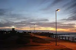 The Green Point Lighthouse, Cape Town is an operational lighthouse on the South African coast.[1] First lit on 12 April 1824, it is located on Mouille Point.[2][3][4] The lighthouse was the first solid lighthouse structure on the South African coast and the oldest operational lighthouse in South Africa.[5] The lighthouse was commissioned by acting Governor of the Cape Colony Sir Rufane Shaw Donkin and designed by German architect Herman Shutte.[6] Building commenced in 1821 and was completed in 1823. The lighthouse started operating in 1824.[2] The lighthouse cost approximately £6,420 pounds sterling to build.[7] When the lighthouse was first lit, it burned Argand lamps fueled by sperm whale oil. The light from these lanterns could be seen for 6 nautical miles (11 km; 6.9 mi). The lighthouse was expanded to its present height in 1865.[5] In 1922, the range of the light house was extended to 22 nautical miles when 3rd order dioptric flashing lights were installed.[8] Its present characteristic is a white light flashing every 10 seconds.[9] In 1926, a foghorn was installed in the lighthouse despite a letter of complaint sent to the Mayor of Cape Town in 1923 by Green Point residents.[2] Local Residents call the Green Point Lighthouse "Moaning Minnie".
