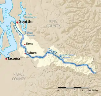 ![]() Map of the Duwamish/Green River watershed with the Green River highlighted | |