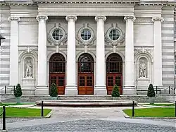In 1902, President Theodore Roosevelt selected the architectural firm of McKim, Mead & White to make extensive structural changes to the White House and redecorate most of its rooms.[3] For the Green Room, the firm decided to mimic an 1820s-style parlor or drawing room in the French Empire style. An 1817 fireplace mantel was removed from the State Dining Room and used in the Green Room,[4] displacing its original mantel. The door moldings, which dated from the James Monroe administration, were retained.[4]