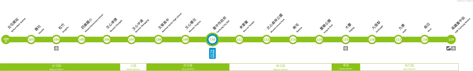 - ^ "烏日文心北屯線". Rapid Transit System Office of Taichung City (in Chinese (Taiwan)). Retrieved October 15, 2019.