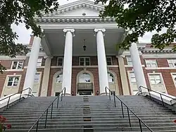 Telford, Armstrong, Thompson, and Murray all lived in the John A. North House when they served as presidents.[3] Carnegie Hall was built as the music hall and department for the women's college with support from Andrew Carnegie.[4] Many notable people, including Helen F. Holt, taught at the school. The school shut down in 1972 and sold it to the West Virginia State Department of Mental Health and became the Greenbrier Center.[4] The North House museum was given to the Greenbrier Historical Society forming the Greenbrier Historical Society.[3] Carnegie Hall, Inc. was formed in 1983 to save the building from destruction and continues to serve the community. The main school buildings eventually became the New River Community and Technical College.