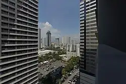 Twin Oaks Place is a twin tower residential condominium development along Shaw Boulevard consisting of a 43-storey East Tower and a 49-storey West Tower. Its first tower, West Tower, was completed in 2014, while its second tower, East Tower, was topped off in October 2017.[15][16]
