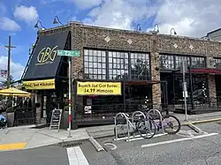 GBG is family- and dog-friendly.[4] The restaurant has a seating capacity of approximately 100 people, with an outdoor patio and seating area that can accommodate approximately 40 people.[5][6] It has multiple televisions and has aired sports events.[7] The happy hour menu has included a cheeseburger, a chicken-breast sandwich, a flourless chocolate cake, nachos, a quesadilla, and a spinach salad, as well as oyster shooters, beer, and wine.[8]
