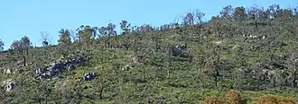 The western and northern slopes, visible from Great Eastern Highway, have extensive Watsonia infestations.
